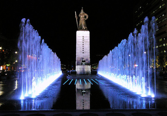 - 이순신 동상 + 12.23 분수 – 17m 동상과 18m 솟구치는 물줄기의 조화가 장관입니다