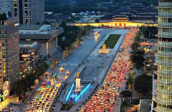 - 광화문·경복궁 정면 전경 – 광장 앞 Gyeongbokgung과 Bugaksan 조망이 환상적