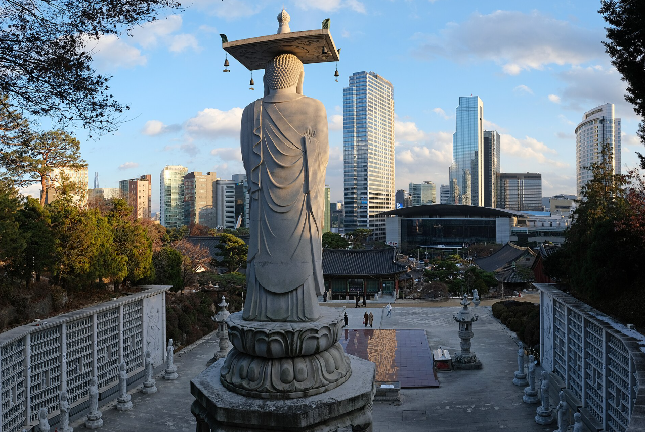 - 도심 속 전통 사진 촬영: 고즈넉한 사찰과 현대 빌딩의 조화 속에서 사진 촬영 명소.
