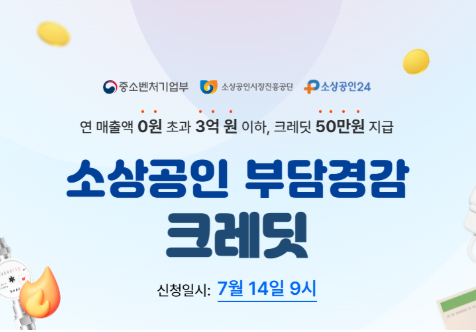 - 연 매출 3억 이하 소상공인에게 1인당 50만 원 크레딧 지급, 고정비용 부담 완화 목적
